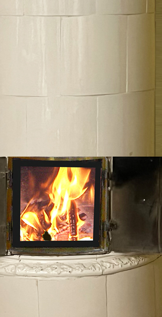 Einbau einer Glasinnentür ist bei allen SVEA-Öfen möglich. S. Beispiele.