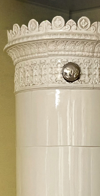 Für eine Platzierung dieses weißen Ofens in der Eckposition wären Wandstücke von jeweils 50 cm ausreichend.