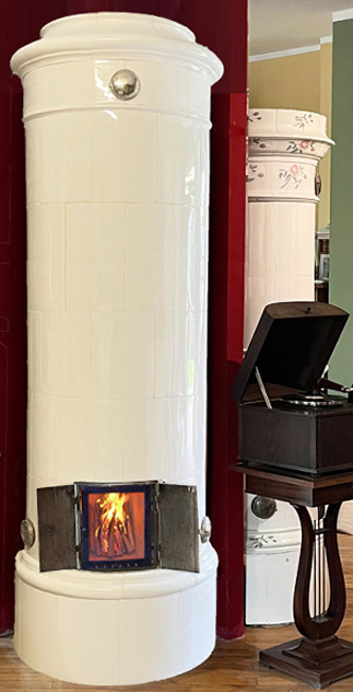 Für die Platzierung dieses Kachelofens in einer Eckposition wären Wandstücke von jeweils 50 cm ausreichend.