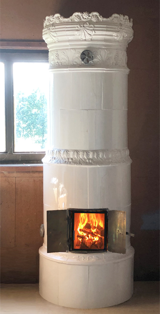 Bitte beachten Sie: Für eine Platzierung dieses weißen Ofens in der Eckposition wären Wandstücke von jeweils 50 cm ausreichend.