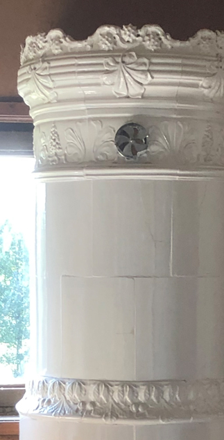 Ein in sich auffallend schöner Ofen durch gelungenes Zierwerk in allen Simsbereichen. Die Krone ist besonders detailliert ornamentiert und äußerst ansprechend.